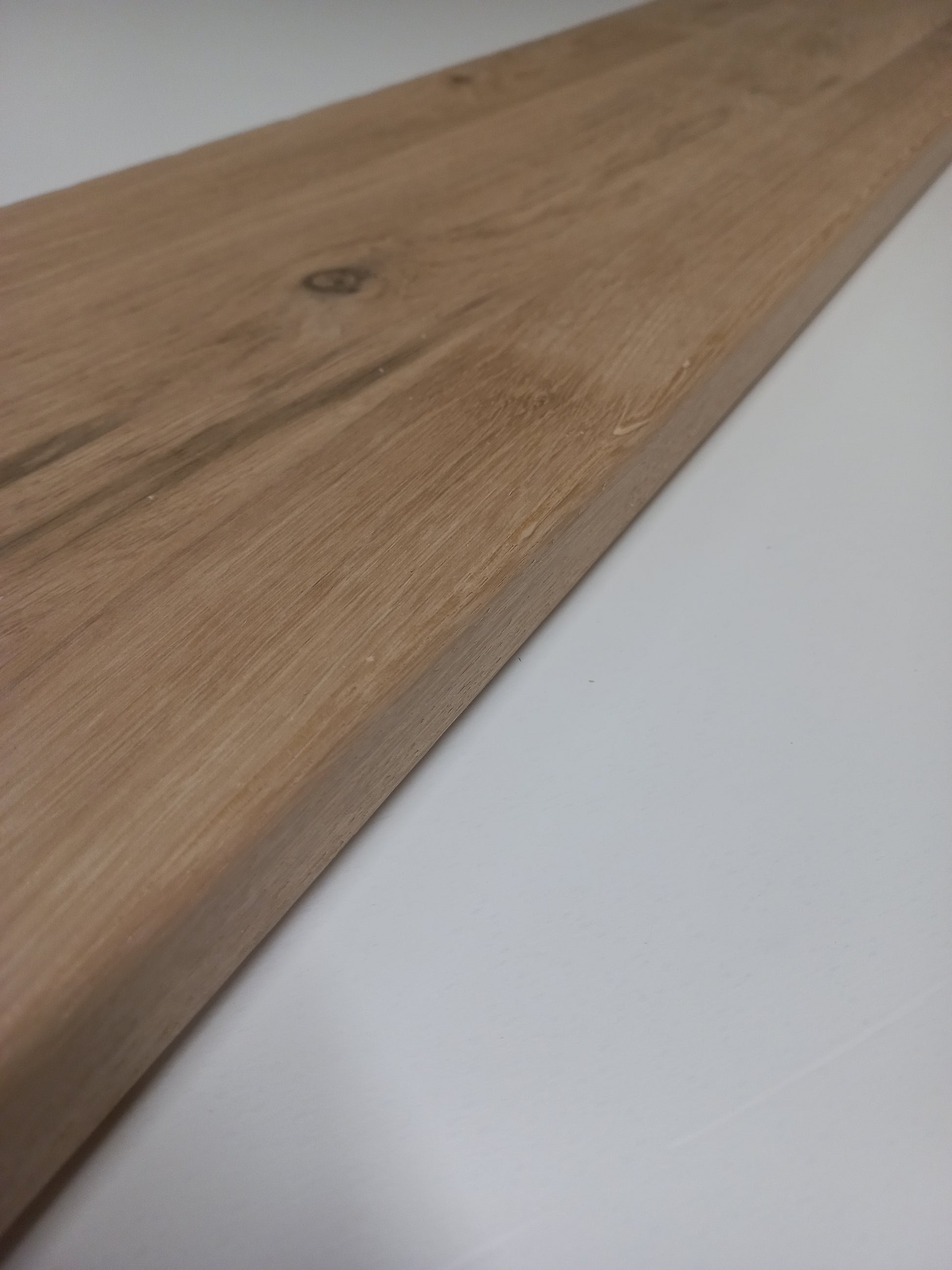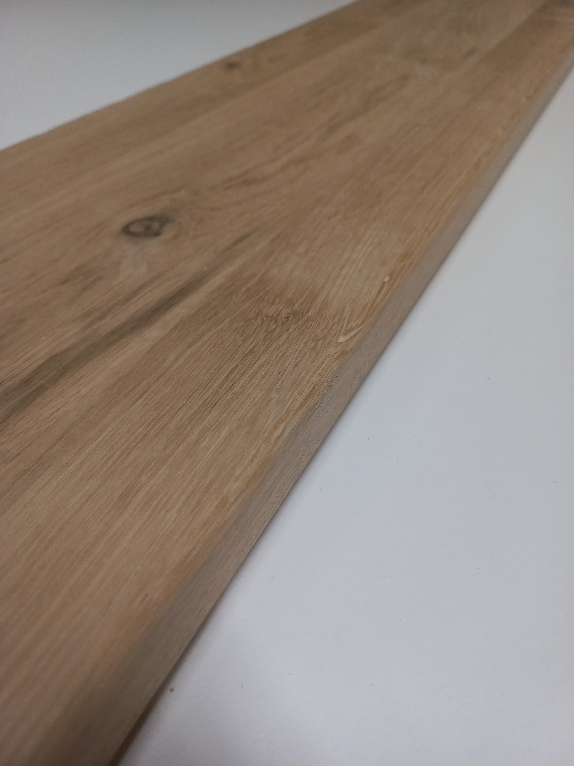 Mooie massief eiken vensterbank met een rustieke uitstraling. Deze harde houtsoort heeft een warme uitstraling en is erg slijtvast.